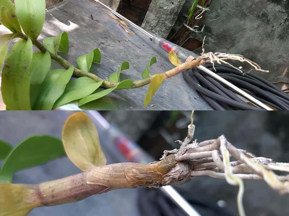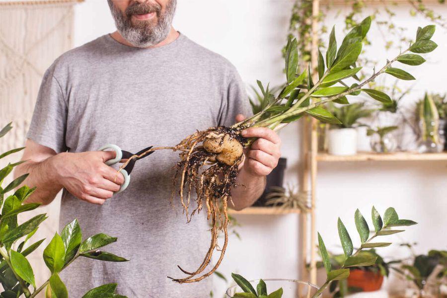 - Bước 2: Dùng kéo cắt hoặc dao sắc đã khử trùng để cắt bỏ hoàn toàn rễ thối (nhũn, nâu đen, có mùi hôi).
